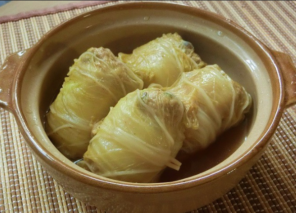 - 배추잎에 속 재료를 넣고 돌돌 만다.